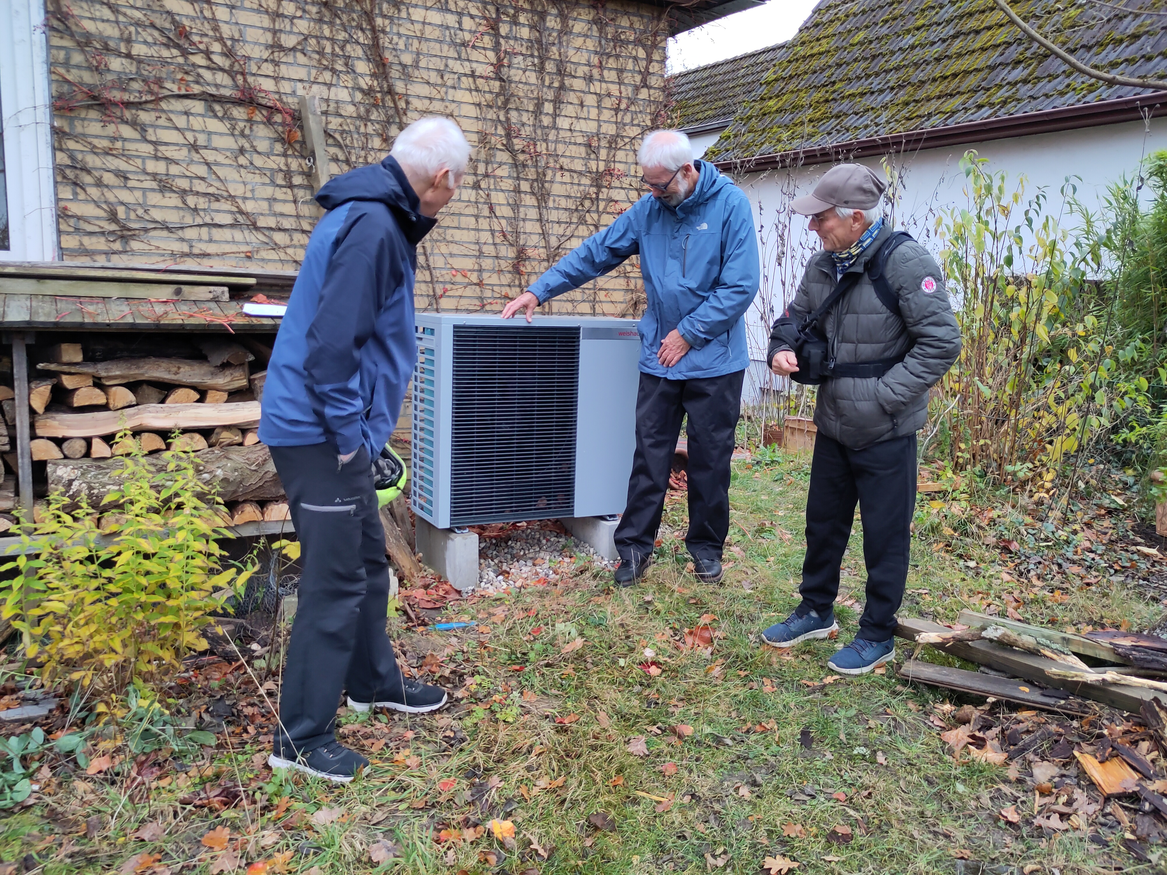 Drei Personen tauschen sich über die Wärmepumpe aus